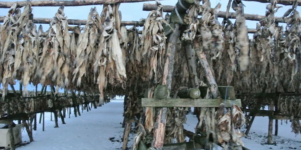 Wind-dried Cod in the winter half light of Iceland