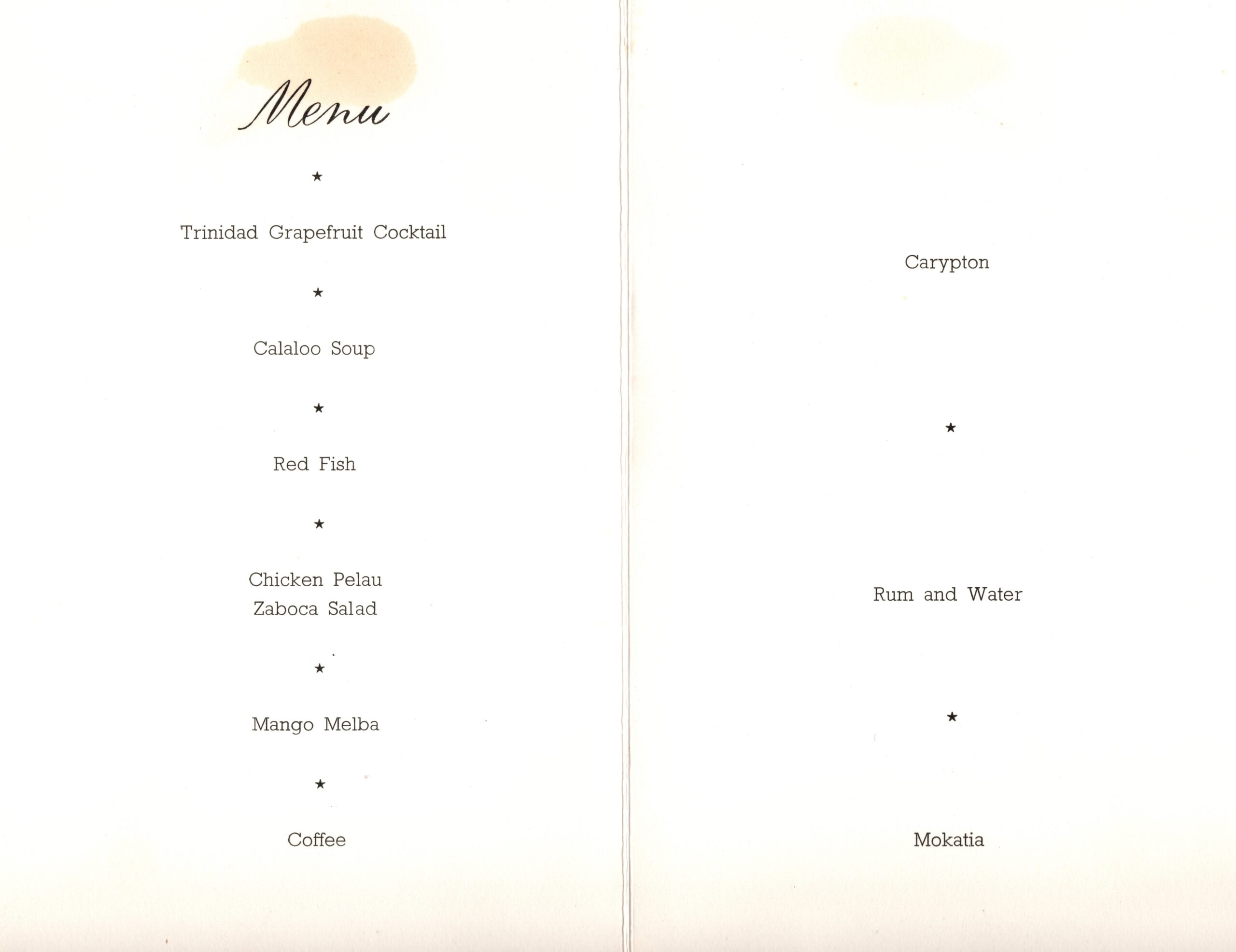 Trinidad Dinner 1963 menu 2
